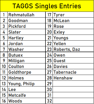 This year there will be one draw and placed into the draw table and once a match is completed, please could the winner send a message on TAGGS WhatsApp so that Rob can update the draw table.